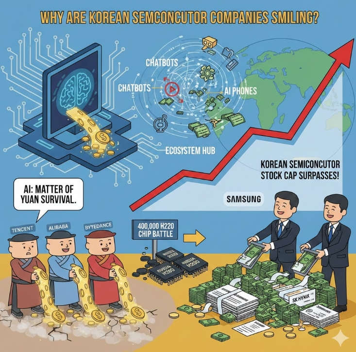 왜 중국 빅테크 3사가 AI에 수십조 위안을 쏟아붓는 동안, 정작 주식시장에서 웃는 쪽은 한국 반도체 기업일까.