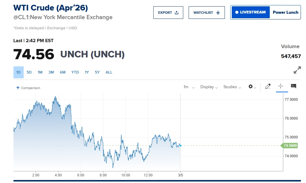 국제유가 돌연 하락 반전 "트럼프 비축유 방출 지시" ... 뉴욕증시 비트코인 폭발 /시세표=CNBC