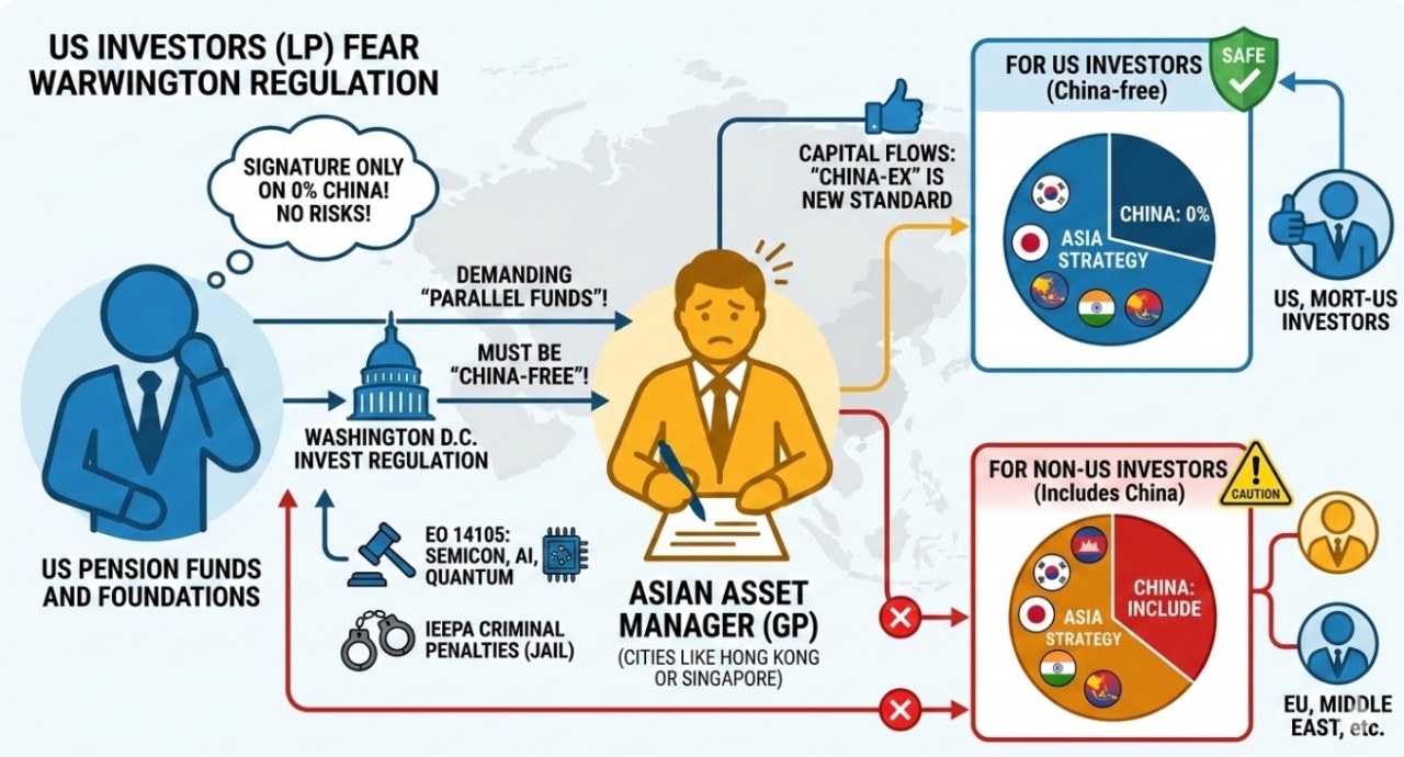 미국 연기금과 대학 기부금 재단 등 대형 기관투자자들이 아시아 전역에 투자하는 기존 펀드 구조는 유지하되 중국 자산만을 완전히 배제한 '병행 펀드(Parallel Fund)' 조성을 요구하는 사례가 급증하고 있다. 이미지=제미나이3