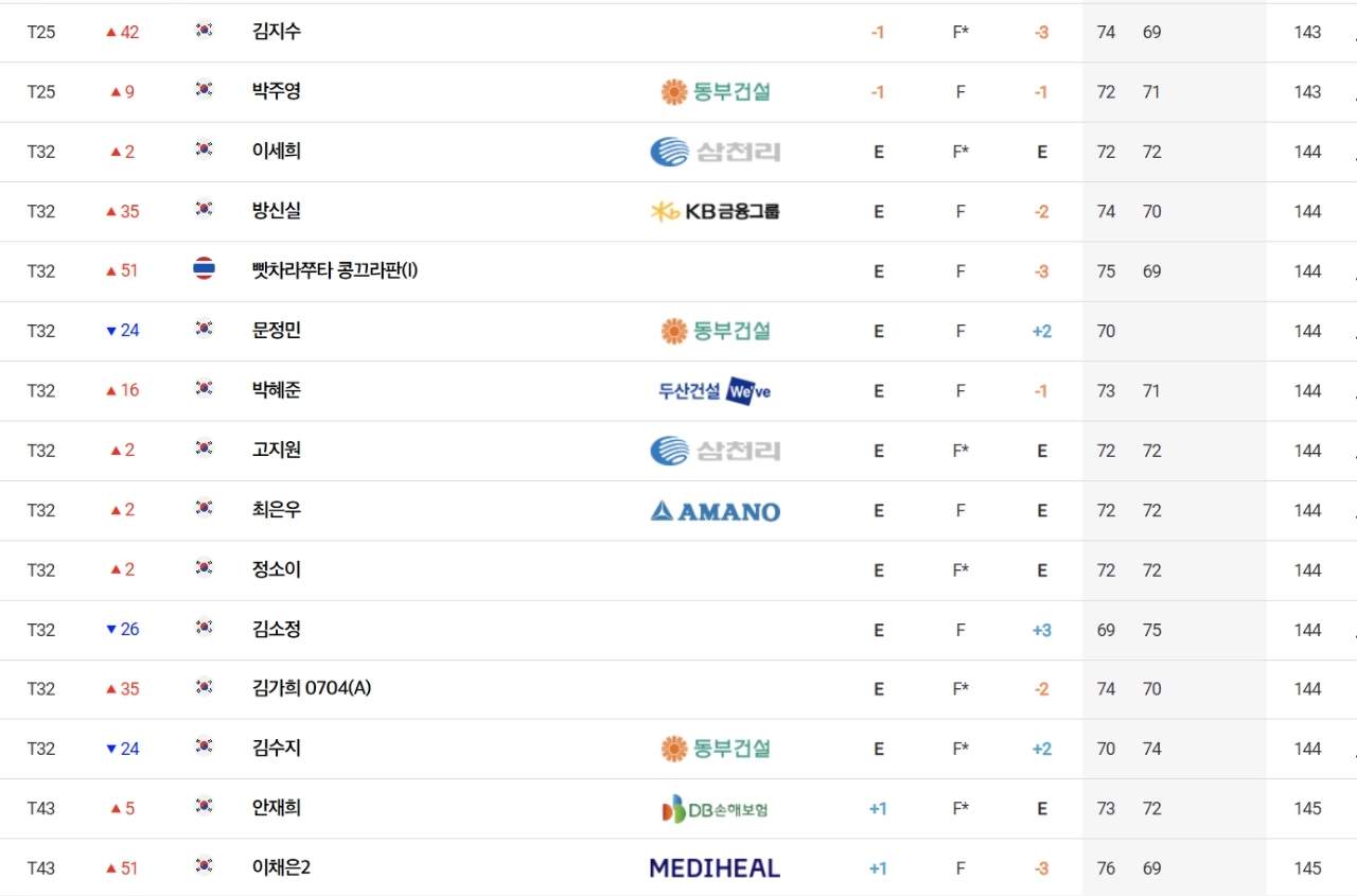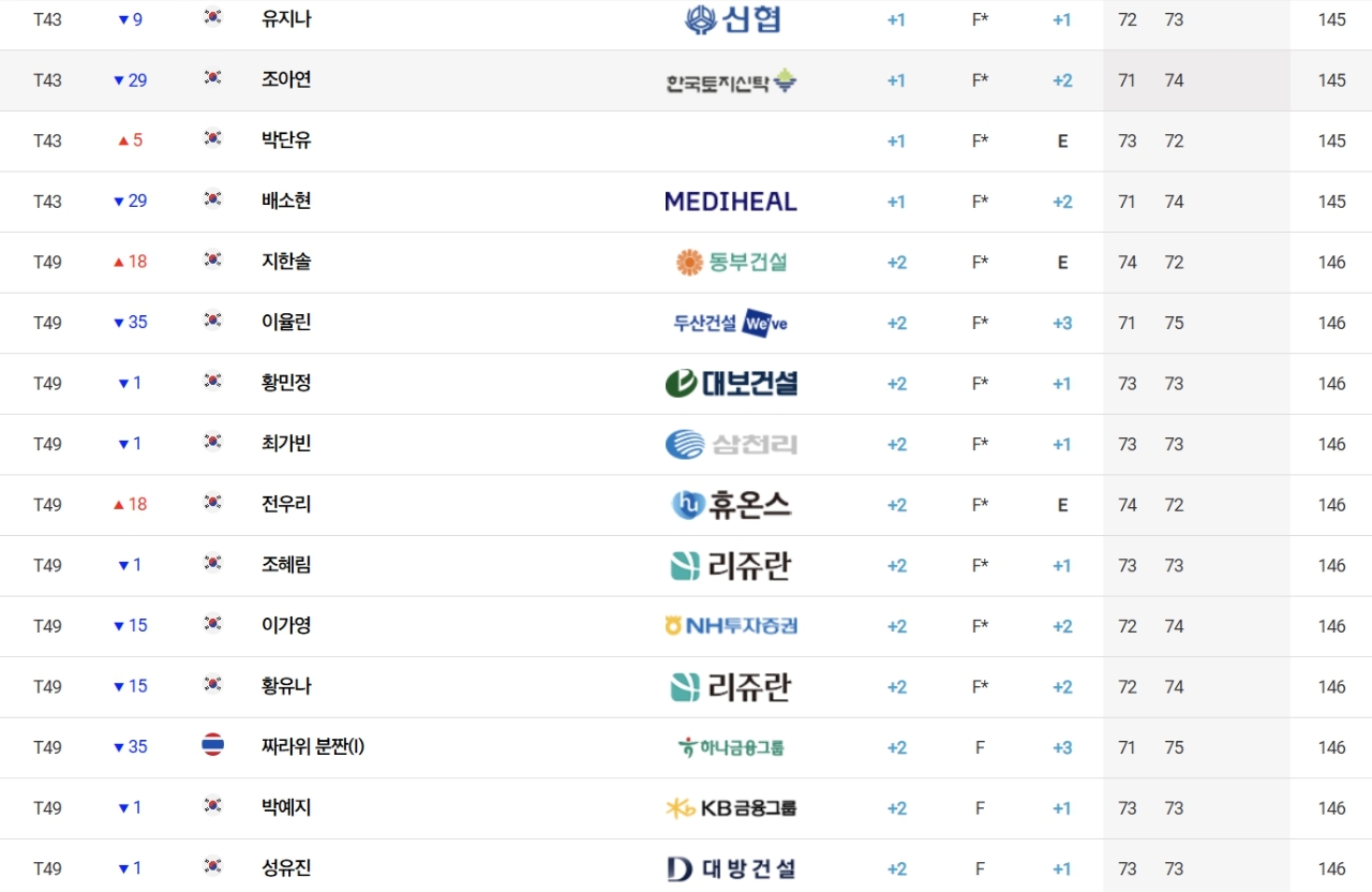 통산 10승을 노리는 이예원(메디힐)은 1타를 잃어 합계 1언더파 143타로 전날보다 17계단이나 밀려나 박주영(동부건설) 등과 함께 공동 25위로 하락했다.