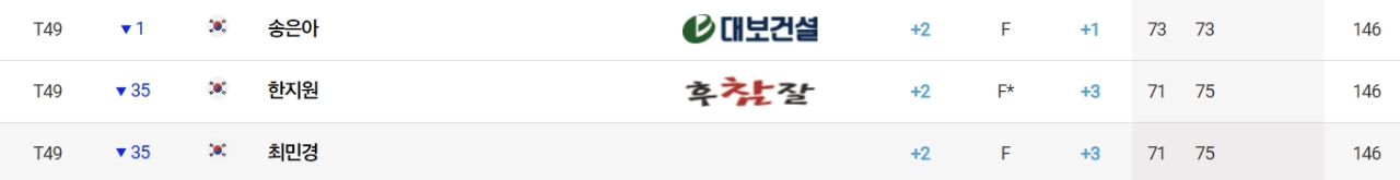 이날 컷탈락 기준 타수는 2오버파 146타였다.