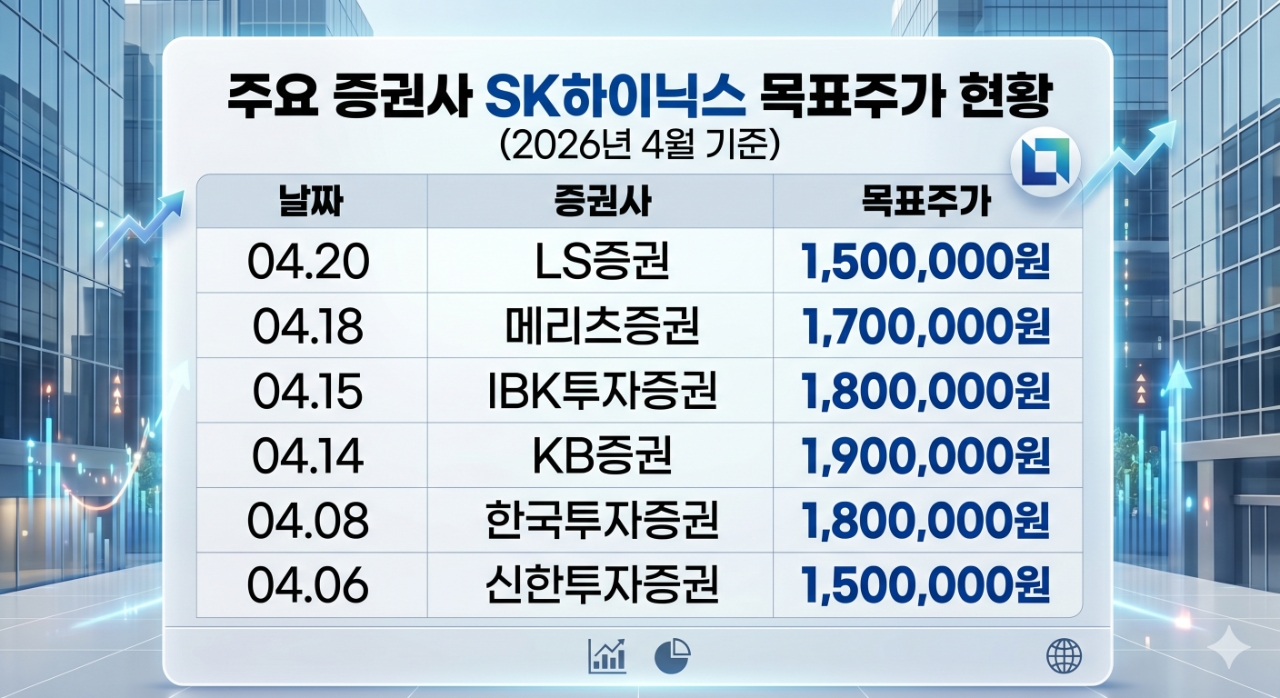 LS증권 외에도 주요 증권사들은 SK하이닉스의 목표가를 경쟁적으로 높여 잡고 있다. 현재 KB증권이 190만 원으로 가장 높은 목표가를 제시하고 있으며, IBK투자증권과 한국투자증권 등도 180만 원 선을 유지하며 강세론에 힘을 보태고 있다.
