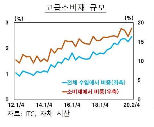 최근 중국 수입수요에 나타난 특징 현상은 수입-수출간 연계가 약화된 점이다. 또한 첨단소재부품과 고급소비재 수입이 꾸준히 증가한 가운데 아세안 국가가 최근 최대 수입대상국으로 부상했다.