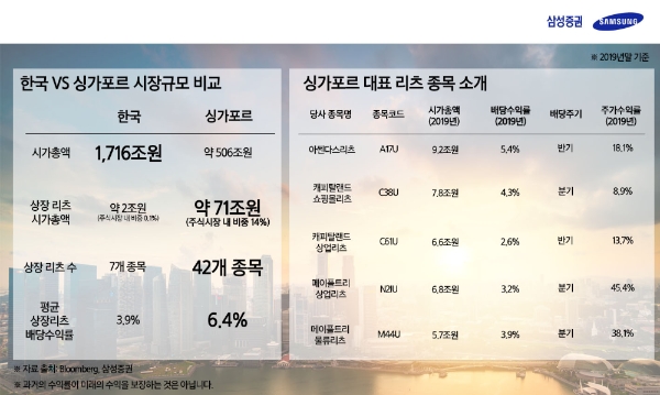 이미지 확대보기삼성증권은 싱가포르 주식시장에 규모와 배당 수익률 측면에서 매력이 많은 리츠(부동산투자회사)들이 상장됐다는 점에 주목해 이 서비스 도입을 결정했다.