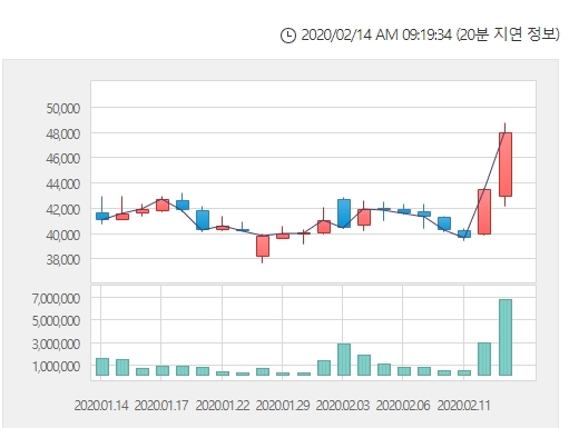 사흘째 오름세다. 이날 장중 4만9650원까지 오르며 사상최고가를 경신했으며 5만 원 돌파를 앞두고 있다.