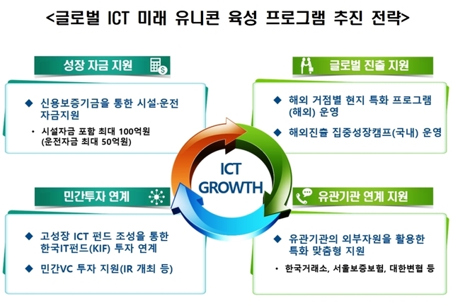 과학기술정보통신부는 ICT 분야의 유망 기업이 빠르게 성장할 수 있도록 ‘글로벌 ICT 미래 유니콘 육성’ 프로그램을 추진하기로 했다.