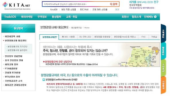 우선 규제 대응 여력이 부족한 중소협력사들을 위해 무역협회 홈페이지(www.kita.net) 내 ‘분쟁광물 특별사이트’를 구축하고 규제대응 등 분쟁광물 관련 정보를 종합적으로 제공할 방침이다.
