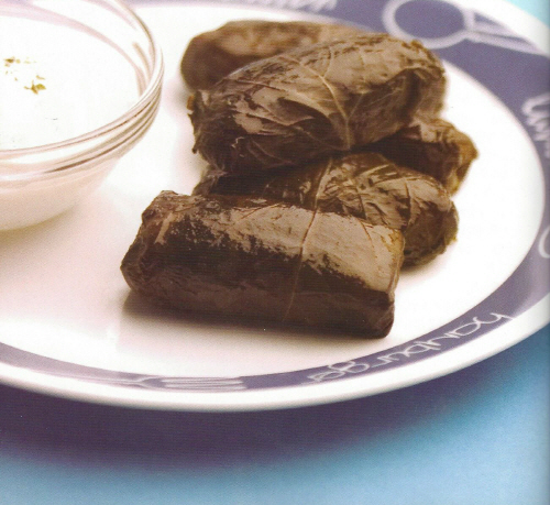이미지 확대보기재료 △쌀 100g △다진 쇠고기 200g △쇠고기 육수 2C △양파 1/2개 △레몬 1/2개 △마늘 △오레가노 가루 △소금 △후춧가루 △레몬즙 약간씩 △포도잎 △짜찌기 소스 적당량