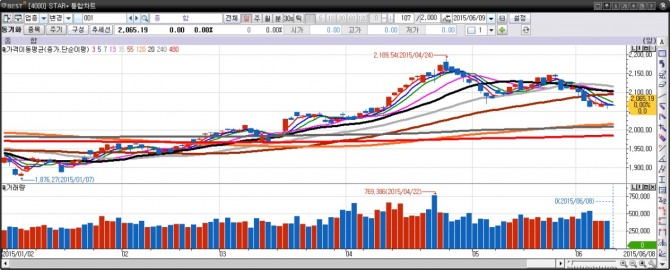 현재 종합지수가 60일 이동평균선 밑에 있으니까 종목에서는 60일 이동평균선 위에서 노는 놈을 고르라는 말입니다.
