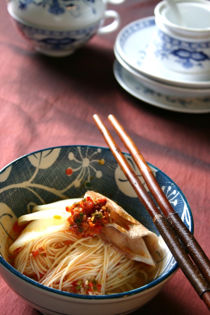5. 국수를 삶아 준비된 육수를 부어 그릇에 담아낸다.