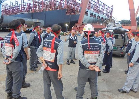 노조는 4일 오전 8시부터 4시간 파업했다. 오후에는 정상근무를 실시했다. 노조는 조선업계 공동파업 결의에 따라 9일 오후 4시간, 17일 7시간 각각 파업할 예정이다.