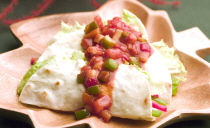 3. 1의 타코 위에 채 썬 양상추, 파프리카, 쇠고기 등을 넣고 살사소스를 얹어낸다.