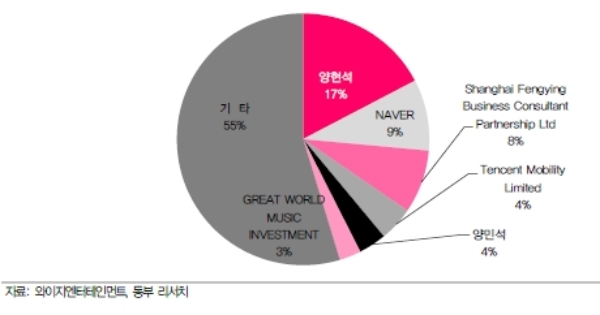 자료=동부증권, 와이지엔터테인먼트 주주구성현황