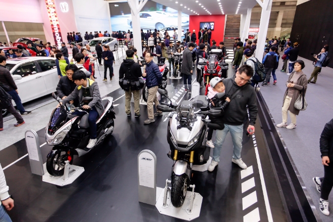 혼다코리아는 이번 모터쇼에 이륜차 브랜드로는 가장 많은 수인 총 8종의 모터사이클을 전시한다. 이 중 중 CBR1000RR SP, CB1100RS, CB650F, CRF250 RALLY, X-ADV 등 5종은 한국 최초 공개모델이다. 특히 혼다의 슈퍼스포츠를 대표하는 모델인 CBR1000RR과 클러치 조작 없이 편리하게 주행이 가능한 X-ADV 등은 관람객들의 큰 관심을 받고 있다.