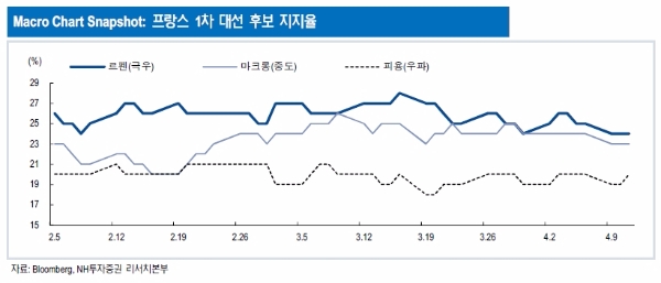 단 프랑스 대선(1차 및 2차 결선)이 금융시장의 리스크로 작용할 가능성은 낮다는 평가가 지배적이다.