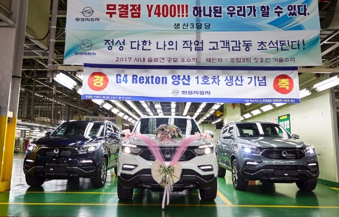 송승기 쌍용차 생산본부장은 격려사를 통해 "오늘은 소형 SUV(스포츠유틸리티차량) 시장에서 왕좌를 차지한 티볼리의 성공신화에 이어 프리미엄 SUV 시장을 선도할 G4 렉스턴의 양산1호차가 탄생하는 역사적인 날"이라며 "그동안 축적된 역량과 노하우를 기반으로 철저한 준비를 해 온 만큼 완벽한 품질을 고객에게 전달할 수 있도록 최선을 다해 주시길 바란다"고 당부했다.