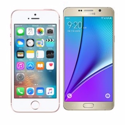 '아이폰SE'(왼쪽), '갤럭시노트5'.