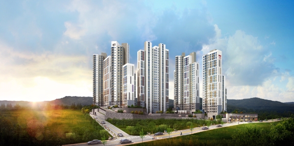 이미지 확대보기단지는 강원도 동해시 천곡동 540-4번지 일원에 위치하며 지하 4층~지상 26층, 9개 동, 전용면적 64~84㎡, 총 672가구 규모로 구성된다.