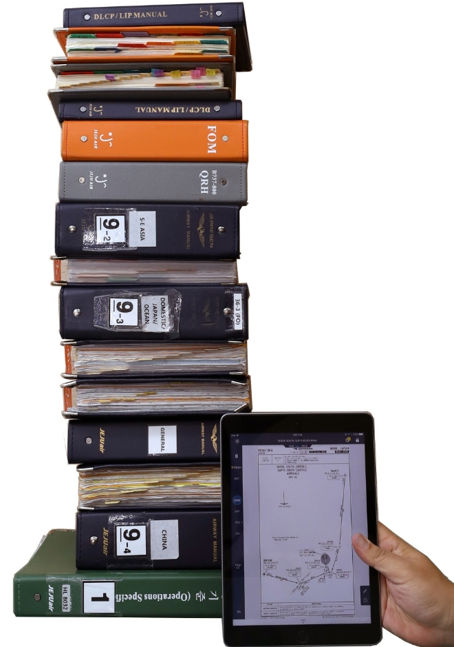 이미지 확대보기애경그룹 계열의 제주항공은 전자비행정보(EFB∙Electronic Flight Bag)를 본격 도입했다고 14일 밝혔다.