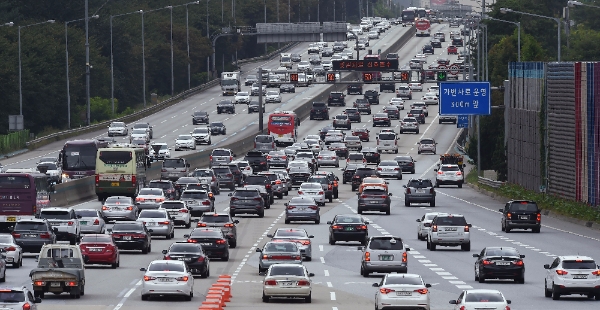 이날 오후 12시 기준 서울요금소를 기준으로 승용차를 이용한 주요 도시간 예상 소요시간은 하행선의 경우 ▲서울~울산 6시간20분 ▲서울~부산 7시간50분 ▲서울~목포 7시간 ▲서울~대구 5시간20분 ▲서울~광주 6시간40분 ▲서울~강릉 4시간20분 ▲서울~대전 4시간20분 등이다.