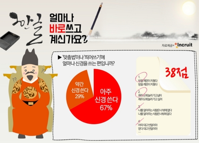 취업포털사이트, 맞춤법 퀴즈 정답률 38%…응답자 83% 자소서나 보고서 제출 후 틀린 맞춤법에 후회