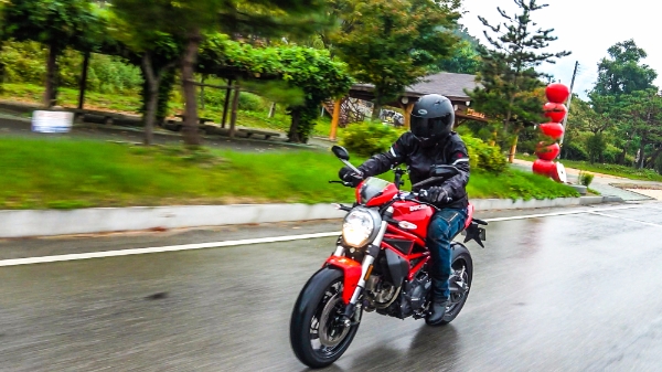 건조중량 175kg의 차체는 코너링에서도 부담이 적었다. 797 시승 당시 가늘게 비가 내려 노면이 젖어있었지만, 와인딩(winding)과 가속, 감속에서 큰 무리가 없었다.
