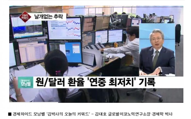이미지 확대보기원화의 달러당 환율은 1080원 대로 추락해 있다.