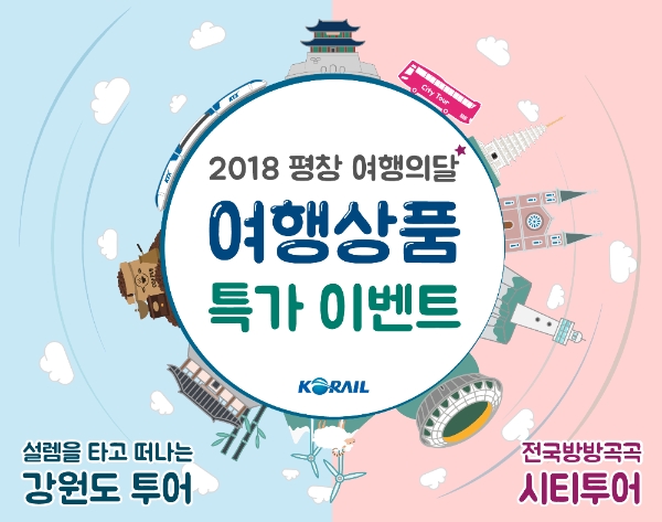 특가상품은 올림픽이 열리는 강원지역을 여행하는 '서울-강릉 KTX 패키지상품 5개'와 서울, 대구, 부산, 익산, 여수 등 5개 도시를 여행할 수 있는 '레일시티투어 상품 5개'로 구성됐다.