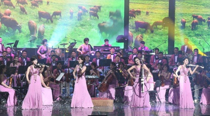 강원도 강릉시 강릉아트센터에서 8일 저녁 열린 북한 삼지연악단의 공연에는 모두 11곡의 한국가요가 포함됐다.