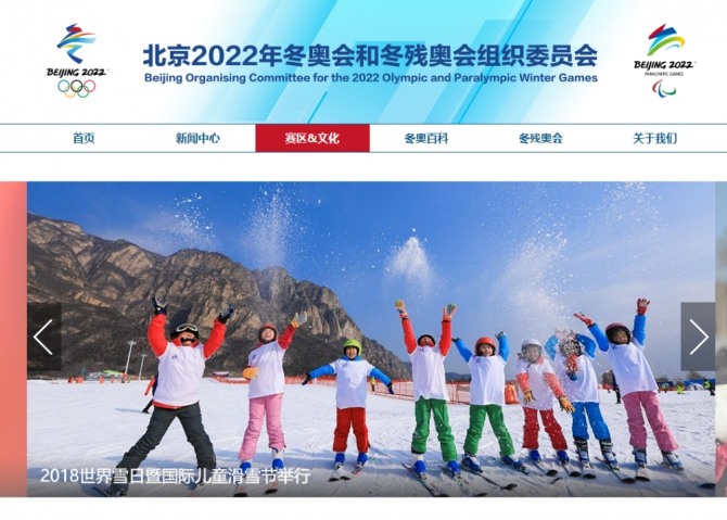2022년 개최 예정 베이징 동계올림픽 홈페이지 캡쳐