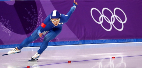 이상화가 18일 열린 여자 스피드스케이팅 500m 경기에서 질주하고 있다. 사진=뉴시스이미지 확대보기