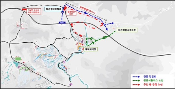 개․폐회식 당일 '대관령IC교차로에서 횡계시내 방면의 지방도 456호선이 차단'된다.