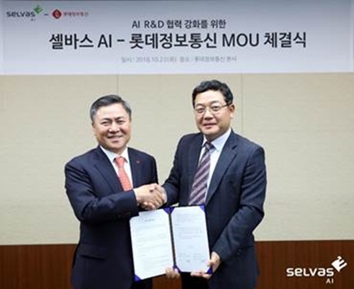 롯데정보통신과 인공지능(AI) 전문업체 셀바스AI가 ‘인공지능 R&D 및 서비스 확대를 위한 양해각서(MOU)’를 교환했다고 23일 밝혔다.
