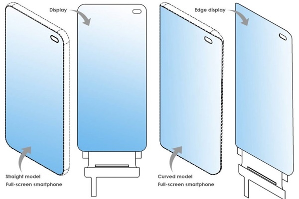 LG디스플레이의 특허 도면을 보면 전면 디스플레이 왼쪽, 중앙, 오른쪽 화면 아래에 카메라를 배치했다는 것을 알 수 있다. 다만 셀피카메라를 도려낸 부분이 타원형이어서 2개의 카메라가 들어갈 가능성이 제시됐다. 앞서 등장한 삼성전자의 티저 사진에서는 하나의 카메라만 보인다.