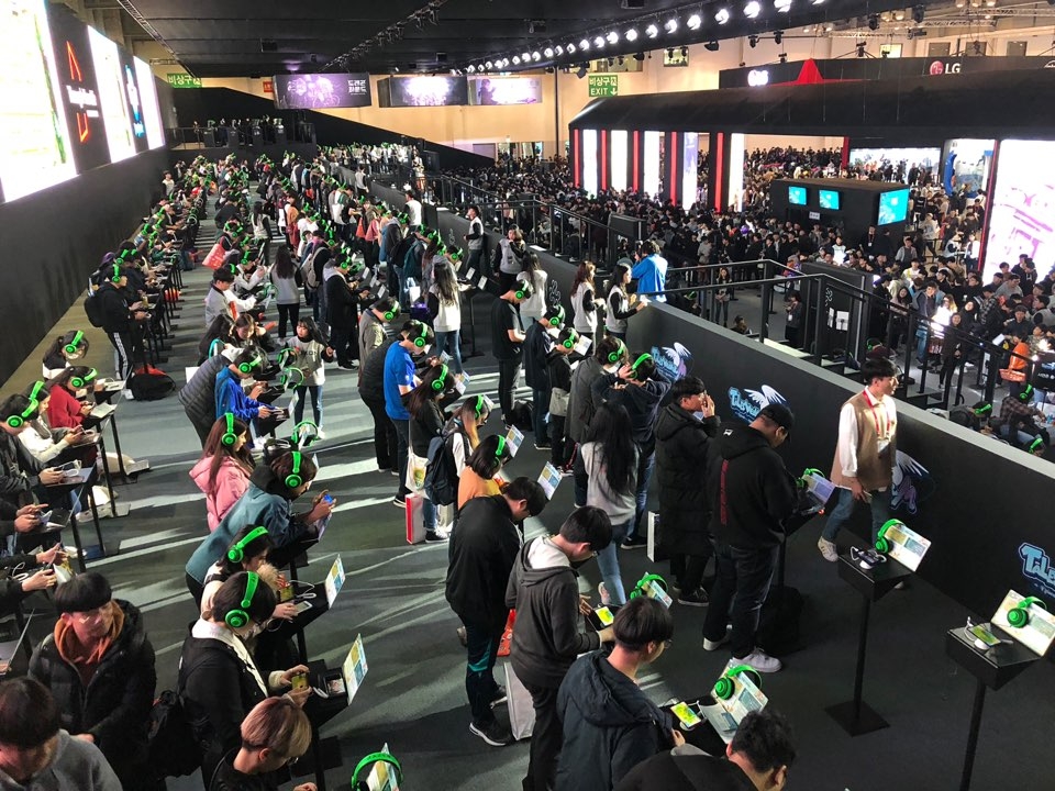 기본 대기시간이 1시간 정도 걸리는 시연존에서 가장 많은 관람객이 모인 곳은 바람의 나라와 크레이지 아케이드 시연존이었다.