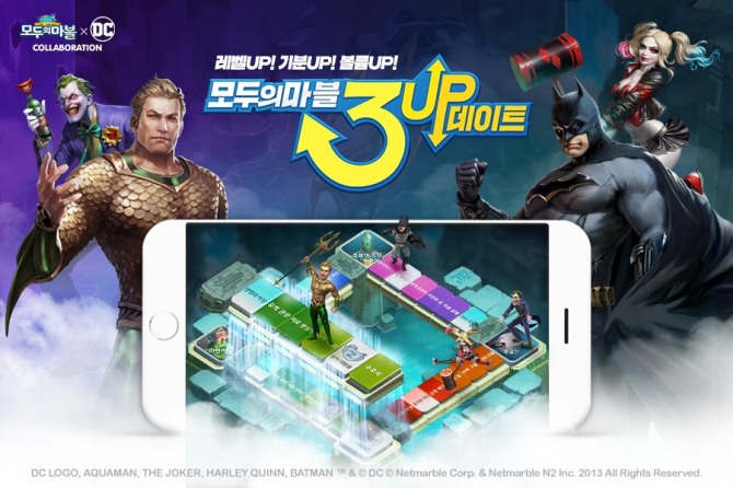 넷마블은 국민 모바일 보드게임 '모두의마블 for kakao(이하, 모두의마블)'이 신규 'DC캐릭터'와 '업다운맵'을 추가하는 대규모 업데이트를 실시했다고 13일 밝혔다.