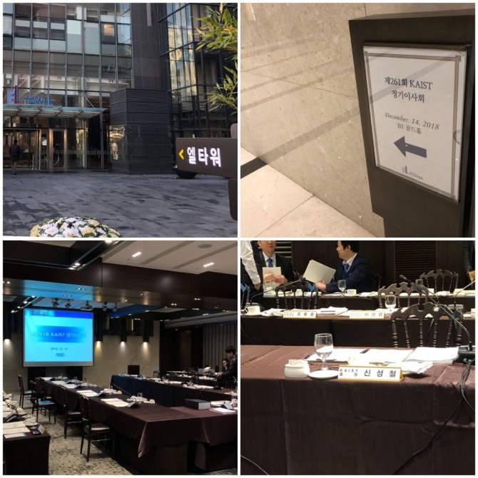 이미지 확대보기카이스트는 14일 양재동 엘타워 지하 1층에서 '카이스트 제 261차 정기 이사회'를 개최한다. 이날 열릴 정기 이사회에서는 신총장 직무정지 여부가 정식 안건으로 상정되어 있다.