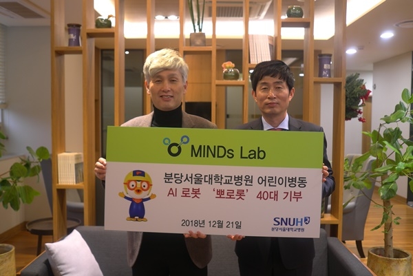 이미지 확대보기마인즈랩 임직원들은 이날 분당서울대병원을 직접 방문해 뽀로롯을 전달하고 기기 연결, 사용법 등을 안내하는 재능기부 형태의 봉사활동도 함께 했다. 봉사활동에 참여한 마인즈랩 관계자는 “병원 곳곳에 뽀로롯을 설치해서 주사를 맞거나 수술을 하기 직전의 아이들에게도 뽀로롯이 응원을 해줄 수 있도록 했다”며 “뽀로롯은 아이들과 소소한 일상 대화를 나눌 수 있는 AI 로봇인만큼 뽀로롯이 아이들의 말동무가 되어주고, 환우들도 뽀로롯과 함께 용기를 내서 씩씩하게 치료받고 완쾌되기를 바란다”고 말했다.
