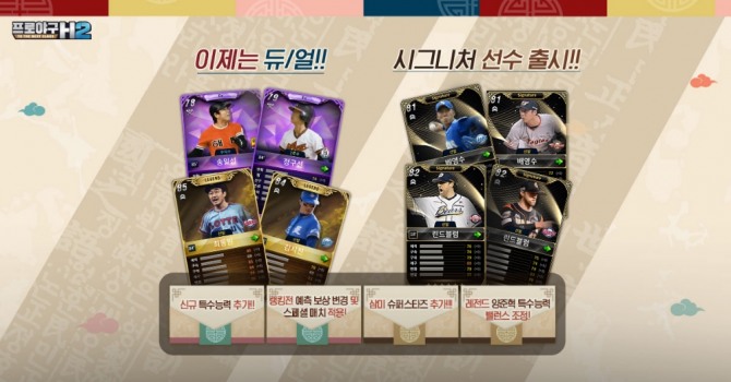 ‘시그니처(Signature)’ 카드로 배영수(’04 삼성, ’15 한화)와 린드블럼(’15 롯데, ’18 두산) 선수를 새롭게 추가했다. 시그니처 선수 카드를 위한 전용 유학지도 선보인다.