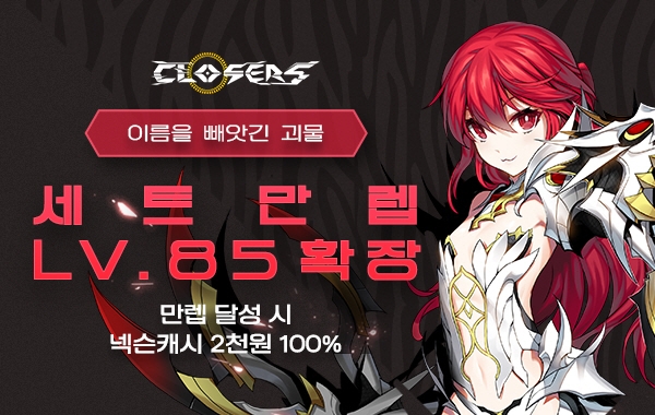 넥슨은 신규 캐릭터 '세트'의 최고 레벨을 기존 83에서 85로 올렸다. 만렙을 달성한 클로저는 외전 지역 ‘몽환세계 연무극장’과 9지역 ‘사냥꾼의 밤’ 타운 입장이 가능하며 신규 스토리를 진행할 수 있다.