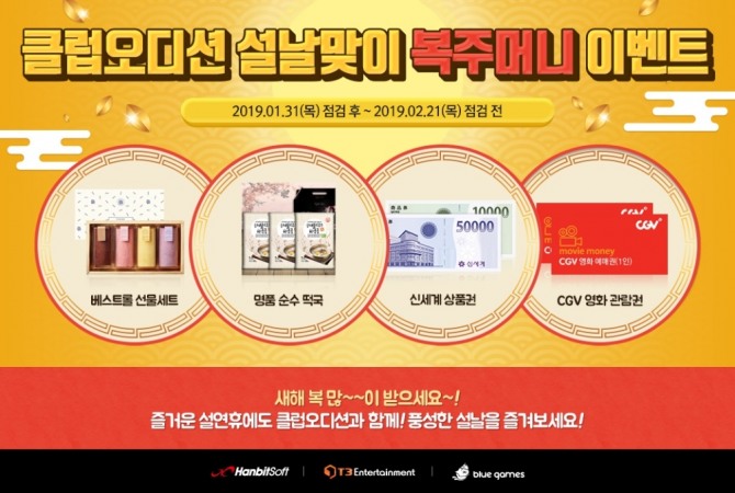 클럽 오디션 관계자는 "민족 최대 명절인 설을 맞아, 그 동안 오디션을 아껴주고 사량해주신 유저들뿐만 아니라 신규 유저들에게도 많은 혜택이 돌아가도록 이벤트를 마련했다"며 "게임 아이템 및 경품 획득을 통해 풍성한 명절을 보내시기 바란다"라고 전했다.