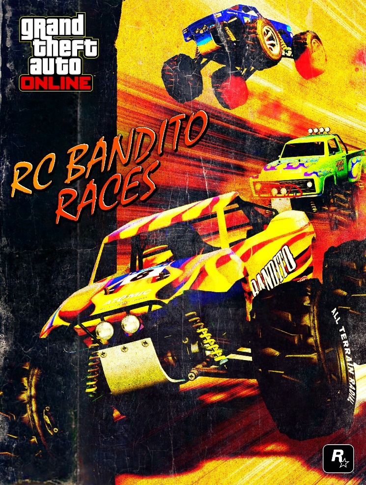 또한 새로운 컨셉의 레이스로 ▲RC-내려다본 풍경 ▲RC-트레일러 파크 대시 ▲RC-항공 교통 관제소 ▲RC-개새끼들의 해변 ▲RC–항구에서의 추억 ▲RC-팔레토 사람들 ▲RC-이판사판 ▲RC-티오프 까지 총 8종이 추가된다. 이 레이스는 RC 밴디토를 소유하지 않더라도 참여할 수 있으며, 2월 6일까지 GTA 달러와 RP를 두 배로 제공한다.
