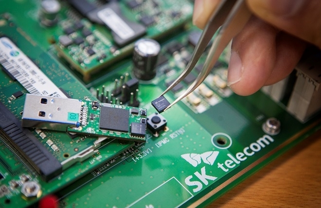 SK텔레콤이 25일 스페인 바르셀로나에서 개막하는 MWC2019에서 양자암호 게이트웨이, 모바일 엣지 컴퓨팅 등 차세대 5G 기술을 대거 시연한다. 사진은 양자난수생성칩(사진=SK텔레콤)이미지 확대보기