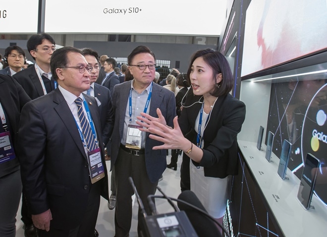 [MWC19] 세계 스마트폰 1위 삼성 부스 찾은 유영민 과기정통부 장관