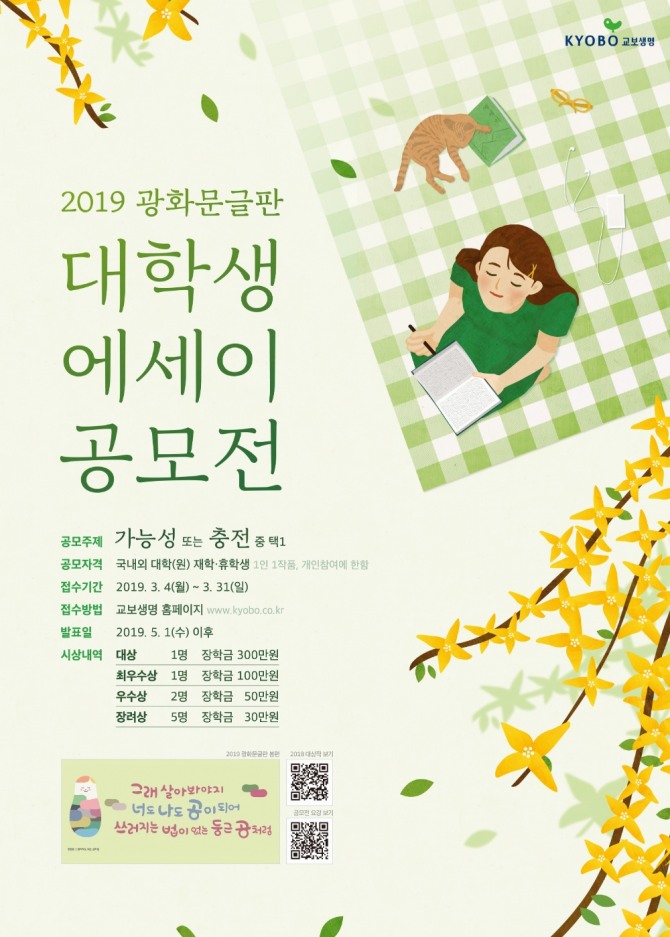 공모전에 참여를 원하는 대학생은 광화문글판 ‘봄편’의 주제인 가능성이나 충전 중 하나를 선택해 본인의 경험이나 생각을 글로 표현하면 된다.