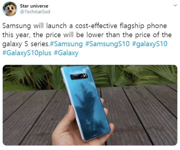 삼성이 최신 보급형 주력폰 갤럭시S10e 이외에 연내 또 다른 저가형 주력폰 모델을 출시할 것이라는 주장이 익명의 트위터리안을 통해 제기됐다. (사진=@TechStarGod트위터)