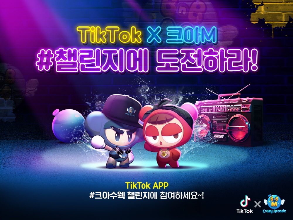 ‘크레이지아케이드 BnB M’의 BGM에 맞춰 신나게 춤출 수 있는 ‘크아수웩’ 댄스와 게임 캐릭터 ‘다오’, ‘배찌’로 직접 변신할 수 있는 AR 스티커 2종을 지난 14일 틱톡 애플리케이션에 출시했다.