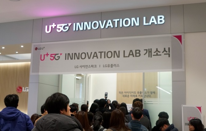 이미지 확대보기LG유플러스는 3일 서울 강서구 마곡 사이언스파크에서 국내외 스타트업과 중소 벤처기업들이 자유롭게 5G 서비스와 기술 아이디어를 제안하고 개발 및 상용화할 수 있도록 ‘5G 이노베이션랩’을 개관했다.
