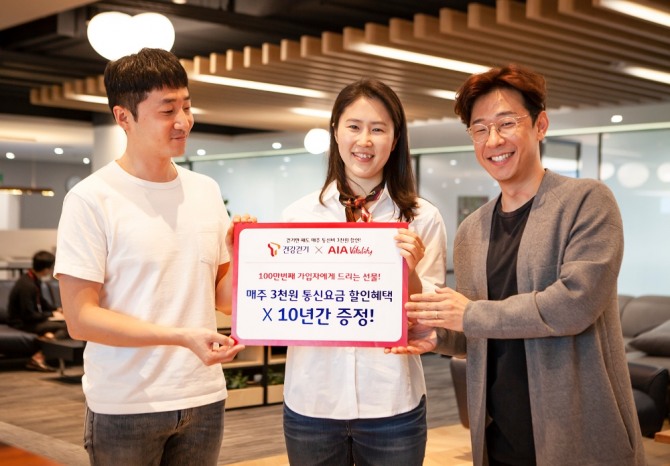 SK텔레콤은 ‘T건강걷기’ 100만 가입자 돌파를 기념해 지난 26일 을지로 SKT타워에서 ‘T건강걷기 100만 가입자’ 선물 증정식을 가졌다. 100만번째 가입자로 선정된 고객은 매주 3000원씩, 10년간 통신비 할인에 해당하는 혜택을 받았다.