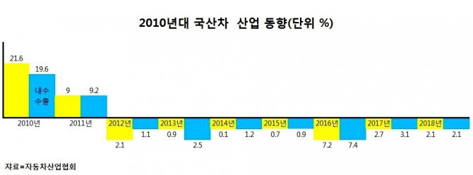 그러나 2008년 세계 금융위기 이후 국산차 산업은 내리막길을 걷고 있다. 경제의 80%를 수출에 의존하고 있는 우리 경제 구조를 고려하면 자동차 산업도 세계 경제 위축의 영향을 받았다.